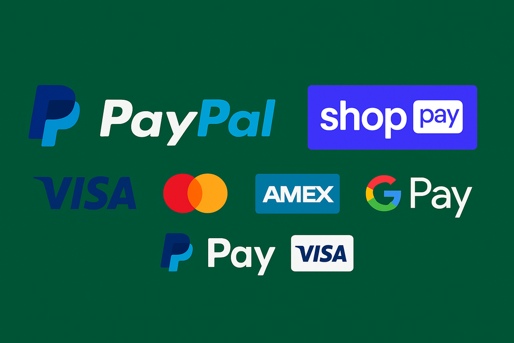 You can pay securely using PayPal or Shopify Payments (credit/debit cards and Shop Pay).